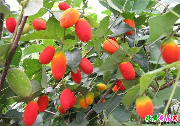 红香果原产南美洲及印度,其奇特在于果形似梨非梨,似桃非桃,非常美观,成熟的果实不会裂果和落果,风味纯正,味道独特,口感极佳,需甜吃果肉,需香嚼种籽,籽肉同食有核桃和芝麻的清香,实为独一无二的珍稀水果,因营养丰富果实红艳故得此名,又因其口感具有野生水果风味在中国又叫“野生红果”,红香果在2月底至3月初开始发芽,花期在5月初至8月底,边开花,边结果,边成熟,每枝节连续结3-4个果实,间隔3-4枝节又连续结3-4个果实,如此反复,鲜果成熟期在7月中旬至11月上旬,遇霜即落叶蔓枯进入冬眠,当年栽当年结果,当年亩产鲜果300-500公斤,3年亩产1500公斤,每年7月-11月鲜果陆续上市,大棚栽培四季有果,效益更高,经储藏供货期可延长数月。适应性强,叶质硬,抗病虫害,似葫芦一样爬架生长,能种西瓜、西红柿的地方均可种植,目前每公斤零售价高达200元,红香果果实中含有20种人体必需的氨基酸及丰富的矿物质及较高的钙、镁、铁、锌、钾、铜、钠等微量元素,可以调理血液、降低血糖、血脂和胆固醇,可帮助消化,调理肠胃,清肝解毒,有效预防面部暗疮斑点,是养颜美容的天然保健果品,味道香甜兼备,实为目前科技园区、旅游观光园、庭院种植的特色高端首选珍稀水果品种。